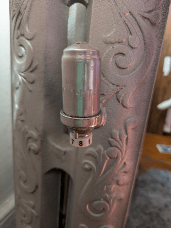 Heating: The house is heated by a steam boiler and radiators. Unlike water boilers, steam radiators balance the heat, so it’s common for only some of the radiator coils to get hot. Because of this heat balancing, DO NOT close the valve on the radiator to adjust the heat. Instead, use the dial on the bottom of the steam vent (pictured), located on the radiator, opposite the valve. To reduce the heat, turn the bottom dial to a lower number or turn it in the opposite direction to increase the heat.